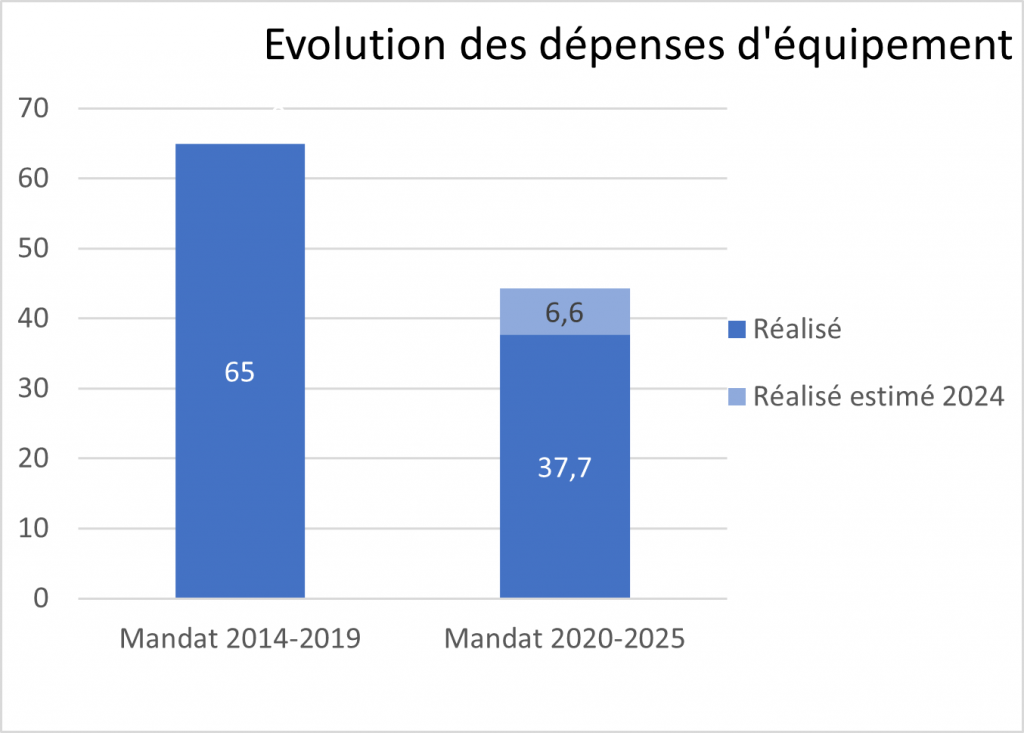 Ce retard est d’autant plus notable que les promesses de campagne de l’équipe municipale, évoquaient un objectif de plus de 73 millions d’euros de dépenses d’équipement sur le mandat.