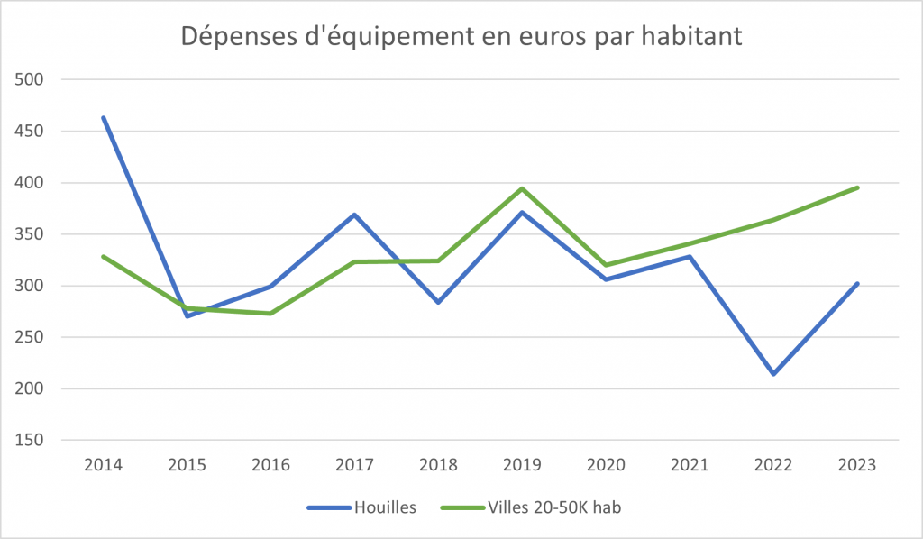 Comparées à d’autres villes de même strate (20 000 à 50 000 habitants), les dépenses pour les équipements de Houilles sont inférieures.