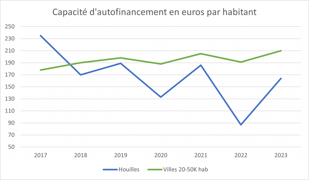 La capacité d’autofinancement, principalement issue des excédents du budget de fonctionnement, a diminué depuis 2022. Cela limite la disponibilité des fonds pour les investissements, malgré l’héritage d’une ville initialement en situation financière saine.